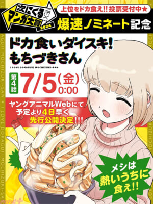 まるよのかもめさんによる漫画『ドカ食いダイスキ! もちづきさん』第4話がヤングアニマルWebにて公開中。また、全話無料公開も実施中です。