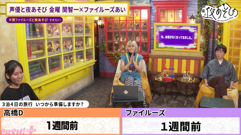 MC2人とディレクターの相性を徹底検証する企画を実施した本放送。度々行っている価値観共有ゲーム“ITO”で、MCの2人と金曜日担当ディレクター・高橋Dの価値観の違いが浮き彫りとなったことを受け、関さんとファイルーズさん、そして高橋Dの相性を再確認し、絆を深めようというこの企画。