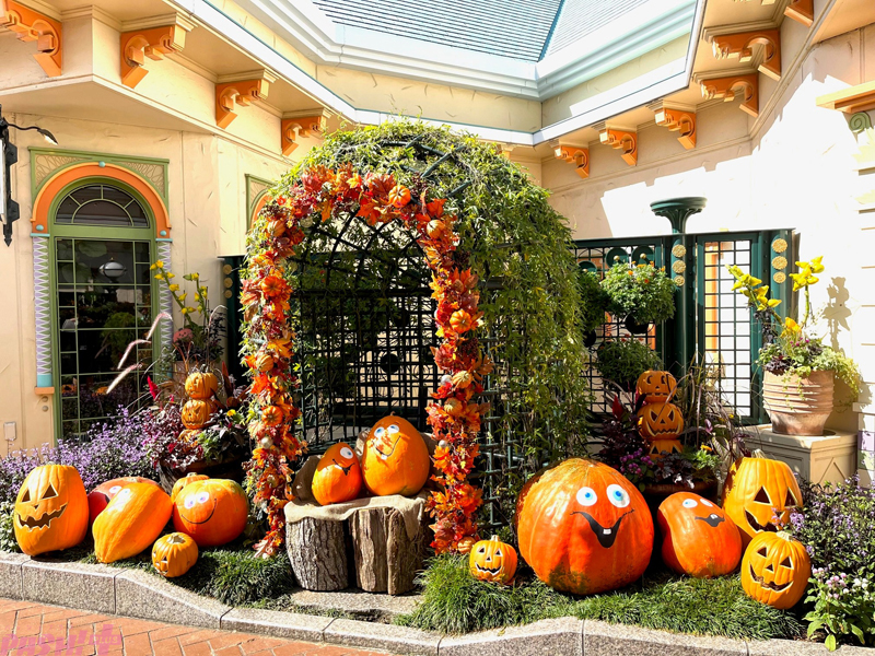 そのほか、エントランスではミッキー花壇がハロウィーン仕様になるほか、ミッキーマウスのシルエットをイメージしたカボチャのフォトスポットが登場します。さらに、今年もトゥーンタウンには東京ディズニーランドのハロウィーンならではのカボチャやゴーストのユーモアにあふれるデコレーションが施されます。