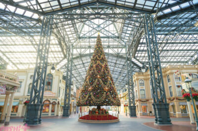 東京ディズニーランドのワールドバザール中央には、高さ約15メートルのきらびやかなクリスマスツリーがそびえたちます。また、クリスマスの妖精“リルリンリン”のオーナメントやガーランドやリースが各所に飾られるなど、東京ディズニーランドのファンタジーあふれるクリスマスを演出します。