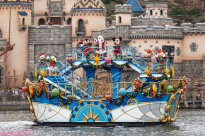 東京ディズニーシーでは、「ディズニー・クリスマス・グリーティング」を公演します。ミッキーマウスやダッフィーなどのキャラクター、そしてサンタクロースがクリスマスのオーナメントで彩られた船に乗って登場し、クリスマスならではの明るく楽しい音楽にのせて、ゲストの皆さまにごあいさつをします。