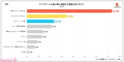 遊ぶアプリゲーム、何で選んでる? 「キャラクターデザイン」「グラフィックの質」を抑えた1位に注目のアンケート結果をエンタミートが発表