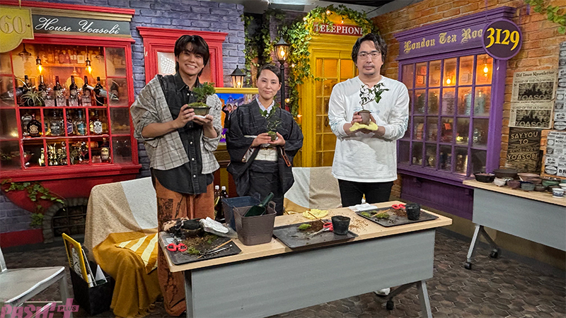 盆栽は、“自然界の植物の姿以上の美しさを求めていく”伝統芸術。これまで盆栽にあまり触れる機会がなかったという2人ですが、早速スタジオに先生の作品が登場すると盆栽の美しさに2人は「神々しいですね」「はぁぁ。かっこいい」「侘び寂びですなぁ」とすっかり釘付けに。その後も「盆栽は大自然の縮小版」「盆栽はまさに人生」と魅力を熱弁する先生。