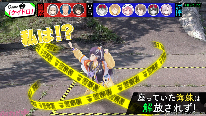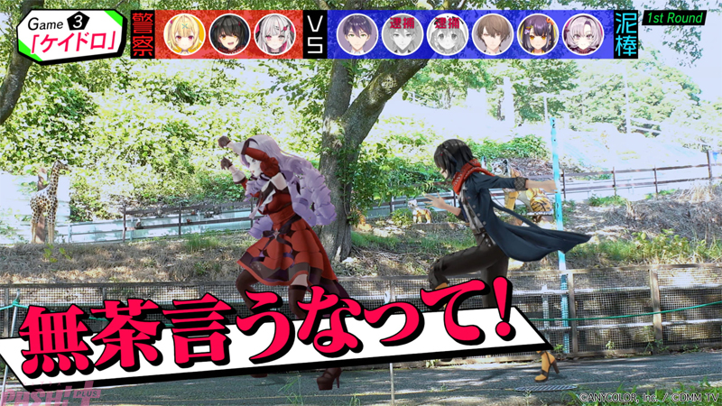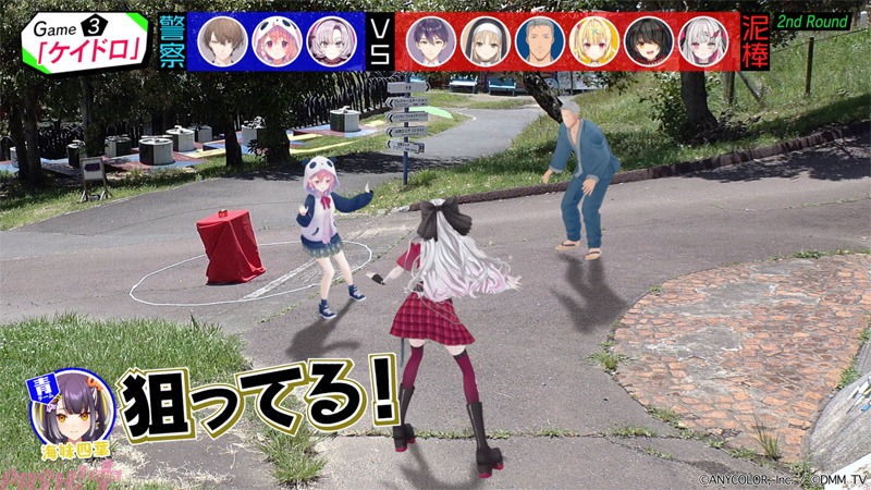 大注目となる、3rdゲーム目の種目は”ケイドロ”。警察チームと泥棒チームに分かれ、警察チームは泥棒を全員捕まえれば勝利、泥棒チームはエリア内にあるお宝をアジトまで持ち替えれば勝利というルールのもと制限時間20分で役割を入れ替えて2回戦行われます。さらに、両チームの助っ人として、MC担当の剣持も泥棒チームに緊急参戦! ゲームの勝敗に大きく影響する活躍振りをみせるのだが……!? チームワークがより試される第3話をぜひ、お楽しみください。
