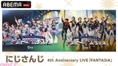 ABEMA(アベマ)は、2025年2月7日(金)、2月8日(土)のそれぞれ19時より、大人気VTuber バーチャルライバーグループ「にじさんじ」が2022年に開催した4周年記念ライブ『にじさんじ 4th Anniversary LIVE 「FANTASIA」』を全編無料放送するほか、「ABEMA PPV(アベマ ペイパービュー)」にて、1人のライバーを追尾できるカメラ映像「ライバーカメラ」を全楽曲放送することを発表しました。