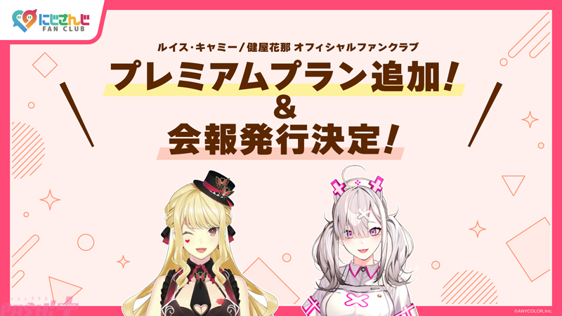 ANYCOLORが運営するVTuber/バーチャルライバーグループ「にじさんじ」は、公式ファンクラブ「にじさんじ FAN CLUB」にて、「ルイス・キャミー」「健屋花那」の新プラン「プレミアム年間プラン」を2025年2月3日(月)に開設します。また、年3回発行の会報誌に関しては、2025年3月号より発行します。