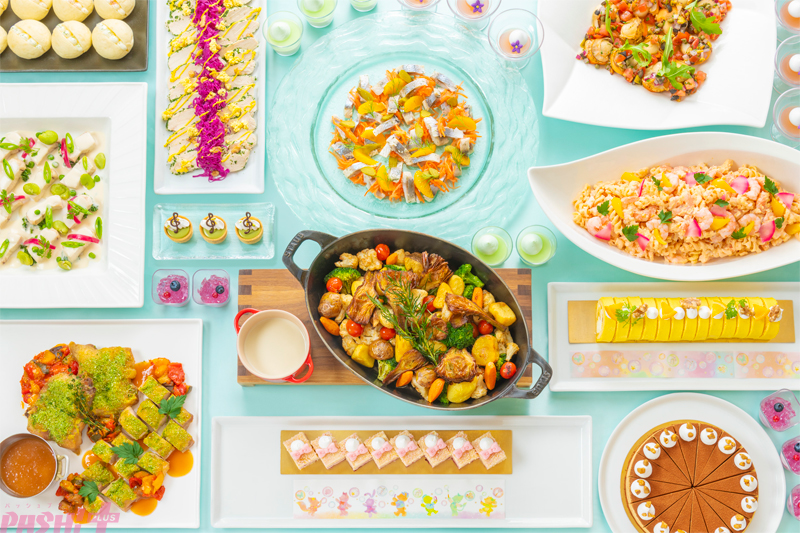ダッフィー&フレンズとシャボン玉をイメージしたモチーフや、虹を思わせる豊かな色彩で20周年を表現したメニューは、ゲストのお祝いの気持ちをさらに盛り上げます。