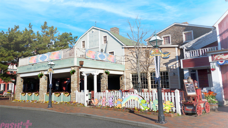 ダッフィーたちにゆかりのあるケープコッドはカラフルな虹やシャボン玉で彩られ、ダッフィーたちをモチーフにしたデコレーションで20周年をお祝いします。