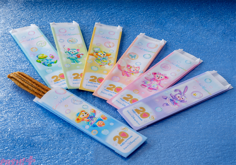 「ダッフィー&フレンズ20周年:カラフルハピネス」を記念して、「トロピック・アルズ」では、ダッフィー&フレンズ7人それぞれを描いた20周年限定の包材に入ったクレームブリュレ風チュロス(ミルクティー)を発売します。