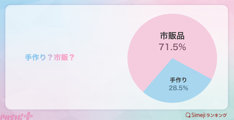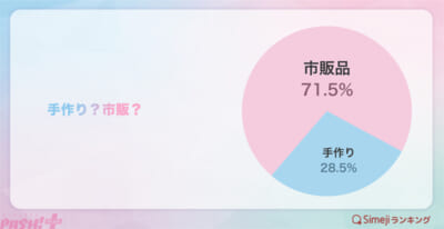 プレゼントを「あげる」と回答した人のうち、71.5%(3,871人)が市販品を選択し、28.5%(1,541人)が手作りを選択しました。市販品の人気が手作りを大きく上回る結果となりました。