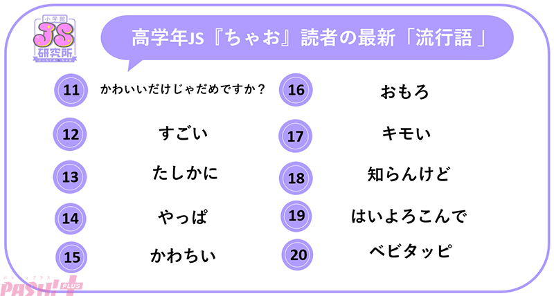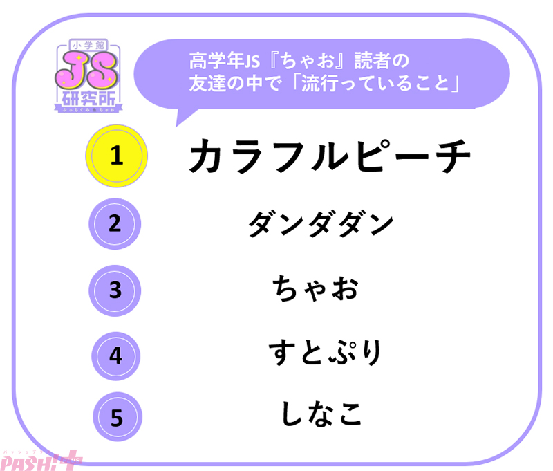 小学館は、小学校低学年女児向け雑誌『ぷっちぐみ』、少女まんが誌20年以上連続部数No.1『ちゃお』の読者とそのご家族を対象にした読者アンケートを両誌創刊以来、定期実施しています。2022年8月より女子小学生(JS)のリアルな本音を、各編集部の視点で定期レポートする「JS研究所」を発足。最新『JS流行語』ランキングなどを発表しました。