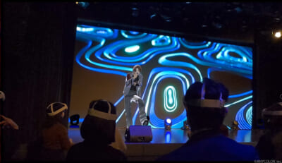 これまでのVTuberの音楽ライブは、会場のLEDモニターに表示される映像を視聴する体験が主体的でしたが、本イベントではヘッドマウントディスプレイやスマートフォンで体験者自身の視点でリアルタイムに鑑賞可能なシステムを開発し、新感覚なライブエンターテイメントの提供を目指しました。