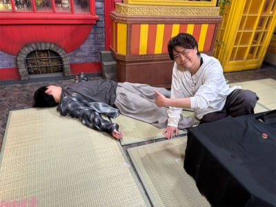お題に合わせた視聴者へのご褒美セリフをダミーヘッドマイクに囁く「感謝のご褒美ダミヘ!」では、今にもダミヘに倒れかかりそうな花江さんに、浪川さんが強制終了する場面も。「これからなのに!なんで止めるんだ」と訴える花江さんにスタジオは大爆笑。終始自由な花江さんに、浪川さんは「この子は本当に苦労して売れた子なの!」と決死のフォローを入れ、笑いを誘います。