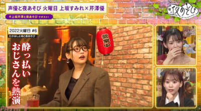 『声優と夜あそび』は、業界初&唯一となる、毎週月曜から週末まで人気声優がタッグを組んでMCを担当するABEMAオリジナルの帯番組。