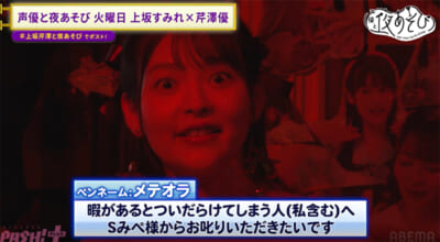 すると、上坂さんは「誰が“Sみぺ様”だって!?うおおおおい!」とSキャラを披露。視聴者のメテオラさんより「暇があるとついだらけてしまう人(私含む)へ“Sみぺ様”からお叱りをいただきたいです」との依頼があったことから、本格的に“Sみぺ様”になりきります。上坂さんは「暇があるとついだらけてしまう人へ“Sみぺ様”からお叱りをいただきたいです?おい!メテオラ!暇なときくらいダラダラしろよ!忙しいときに働いてんだろ?暇なときくらい休めよ!有効活用しろ!休み時間を!」と叫び、番組を盛り上げました。これには「ABEMA」のコメント欄も、「ありがとうございます!!!ありがとうございます!!!」「荒ぶるすみぺがもう見れなくなるのかと思うと……」と大盛り上がりとなりました。