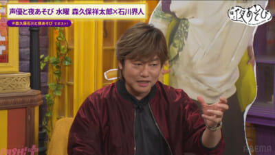 ABEMA(アベマ)は、“アニメLIVEチャンネル”において、2025年3月19日(水)の夜10時から夜11時30分にわたり『声優と夜あそび 水【森久保祥太郎×石川界人】#38』を放送しました。