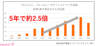 「おじさん」「おっさん」がタイトルに入るマンガ作品数が5年で約2.5倍に