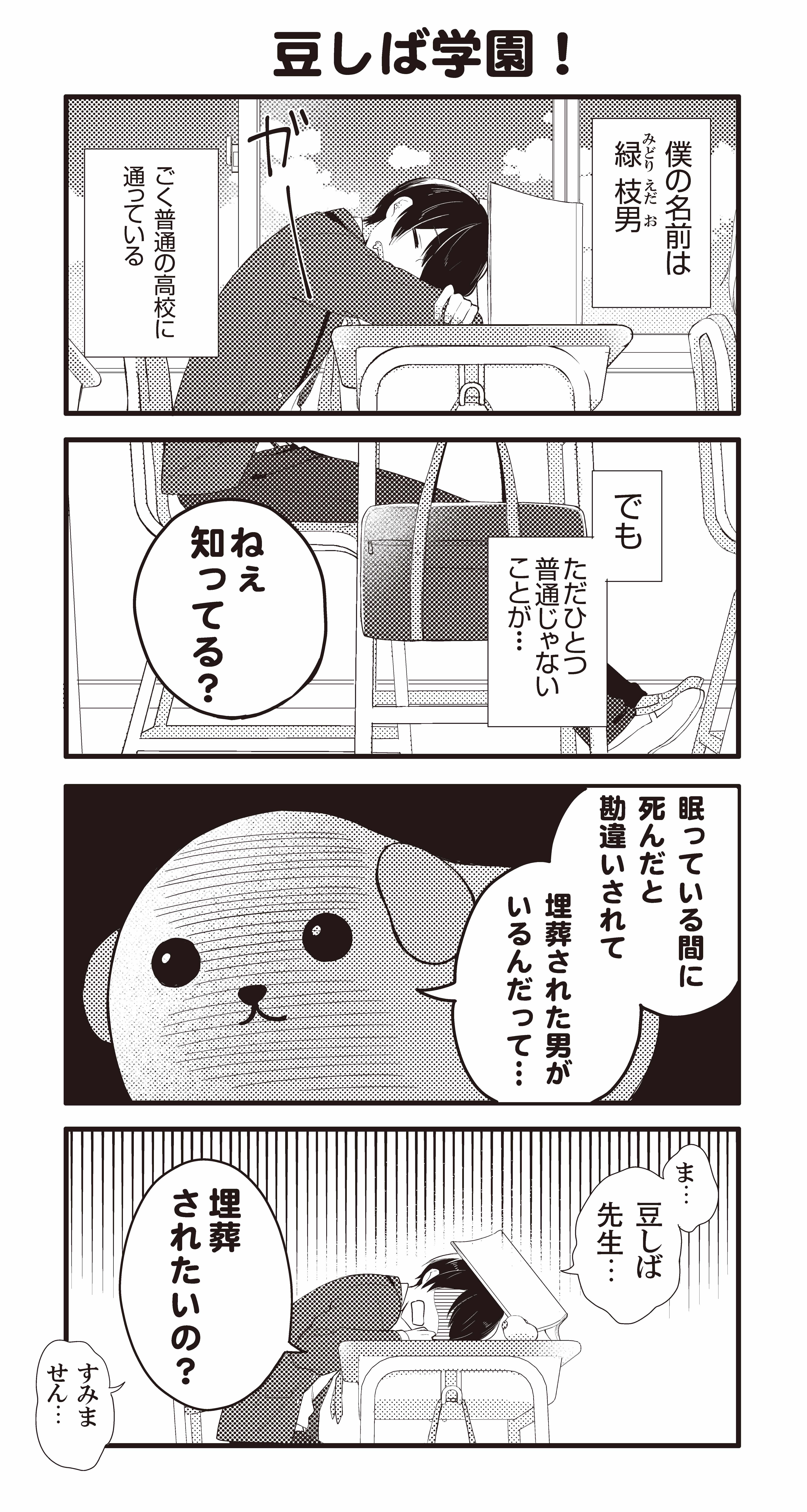 分割して掲載されていた4コマ『豆しば学園』第1話をまとめました!