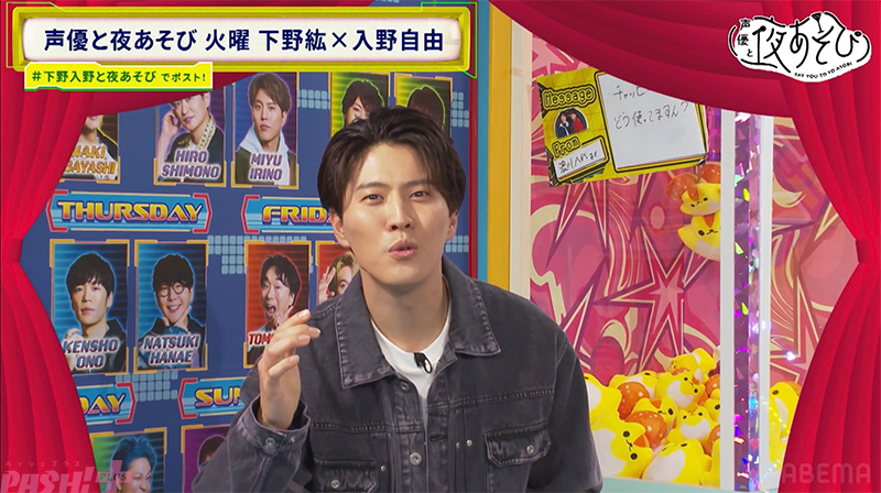 『声優と夜あそび』は、業界初&唯一となる、毎週月曜から週末まで人気声優がタッグを組んでMCを担当するABEMAオリジナルの帯番組です。