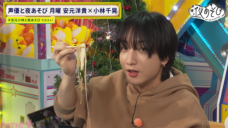 ほかにもダミーヘッドマイクにさまざまな台詞を囁いていく「味深ワード」を実施。人気企画の久々の復活に盛り上がるも束の間、届いた麻辣湯を食べたい二人が耳元で食事を始めてスタジオは爆笑の渦に。安元に優しく語りかけながら台詞を読む小林の姿に笑いつつ、視聴者も大満足の夜あそびとなりました。