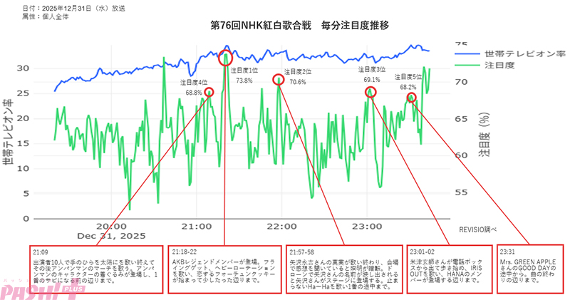 ▲第76回NHK紅白歌合戦 注目度毎分波形(REVISIO)