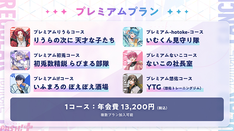 既存の会員プラン(月額会員:550円、年額会員:6,600円)に加え、より深くいれいすメンバーを応援したい方に向けて、各メンバーごとの「プレミアムプラン」を新設します。