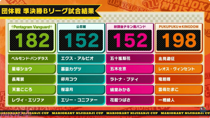 ANYCOLORが運営するVTuber/バーチャルライバーグループ「にじさんじ」公式チャンネルにて、「【マリオカートワールド】第8回マリオカートにじさんじ杯 団体戦【#マリカにじさんじ杯】」が配信。大会はチーム04の†Pentagram Vanguard†が優勝となりました。