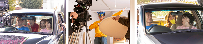 一方、しんのすけの帰りを待ちきれずに、家まで迎えに来た野原一家の車内シーンでは、本番以外の時間も近況報告で大盛り上がり。野原家らしい温かさとにぎやかさに包まれながら撮影は終了しました。