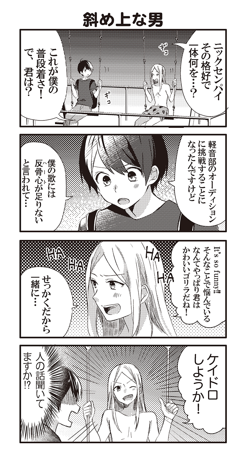変質者もとい豆学の軽音部のキング、ニックとの対話を経て、枝男もロックに目覚めるはず…!?次回更新をお楽しみに!