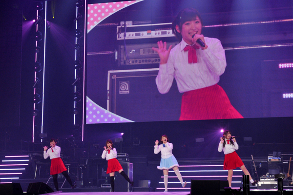 ▲3日目はトップバッターからスペシャルコラボ! ミルキィホームズ、i☆Ris、上坂すみれさん、東山奈央さんが『ミルキィ A GO GO』ならぬ『ANISAM A GO GO』を歌いました。全員色違いの探偵衣装がカワイイ!