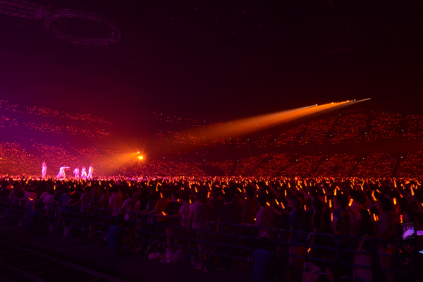 そんな彼らが披露したのは『ラブライブ!』の名曲『Snow halation』。大胆なバンドアレンジに一瞬戸惑った客席ですが、すぐになんの曲かわかったようで、ペンライトを即座に白にして“Snow”を表現していました。