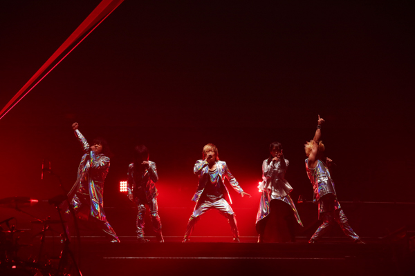 MC明けは、ゲーム『スーパーロボット大戦シリーズ』から『VICTORY』『GONG』『鋼のWarriors』の3曲をメドレーで披露。激しすぎるメドレーで爆発しそうな会場にとどめを刺したのは、同じく『スーパーロボット大戦シリーズ』の『第2次スーパーロボット大戦α』のオープニングテーマの『SKILL』。普段のライブでも終盤に投入されるこの曲でクライマックスを迎えた会場は、「I can fly!(Hey)」「You can fly!(Hey)」のジャンプに揺れ、「Motto Motto」のコール&レスポンスに吠えるように応えます。大熱狂のステージはメンバーの『OK!』のコールののちの大ジャンプで終了しました。