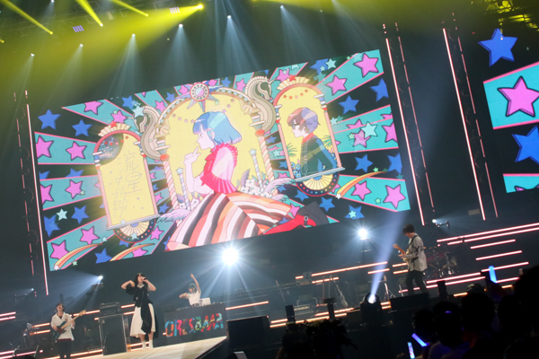 ▲DJがいる珍しい編成のORESAMA。ディスコティックなサウンドの『流星ダンスフロア』では、そのタイトル通り会場がダンスフロアに。