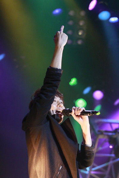 「アーティストナイト」では、イエローライトで会場が照らされるなか左右へ移動して歌い、会場を煽ったり元気なヨシュアの姿を披露。つづく「Dear…」では胸に手を当て想いをはせながらしっとりと歌唱した。