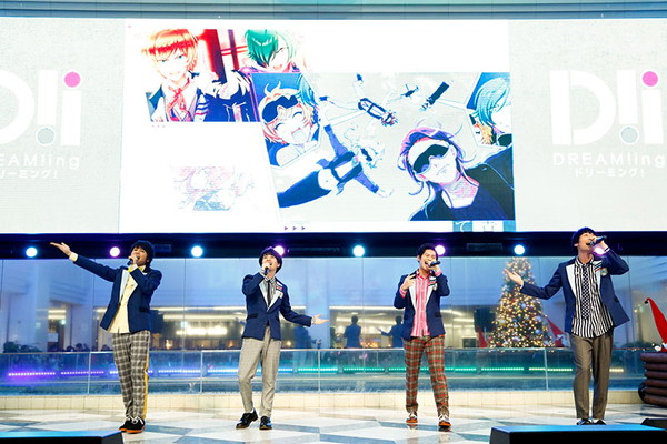 大抽選会を経て、最後に『DREAM!ing』の主題歌で、今年9月26日(水)にリリースした1stシングル「TAKE A DREAM!!」を初披露。キャストによる初のライブパフォーマンスに数多くの女性ファンが集まった会場の熱気は最高潮に。生アフレコ、生ライブとファンには堪らないイベントを終えたキャスト陣は3階のバルコニーで観覧しているお客さんにも笑顔で手を振りながらステージを後にしました。