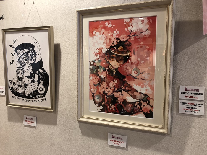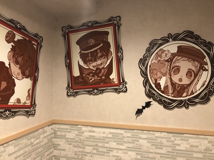 また、店内には『地縛少年花子くん』のイラストパネルなどが多数展示。コラボメニューが届くまでの間、あいだいろ先生が描くキュートかつ鮮やかな世界を楽しめる贅沢な空間となっている。どこもかしこも可愛い。