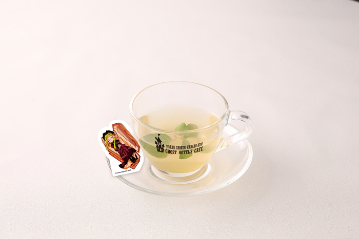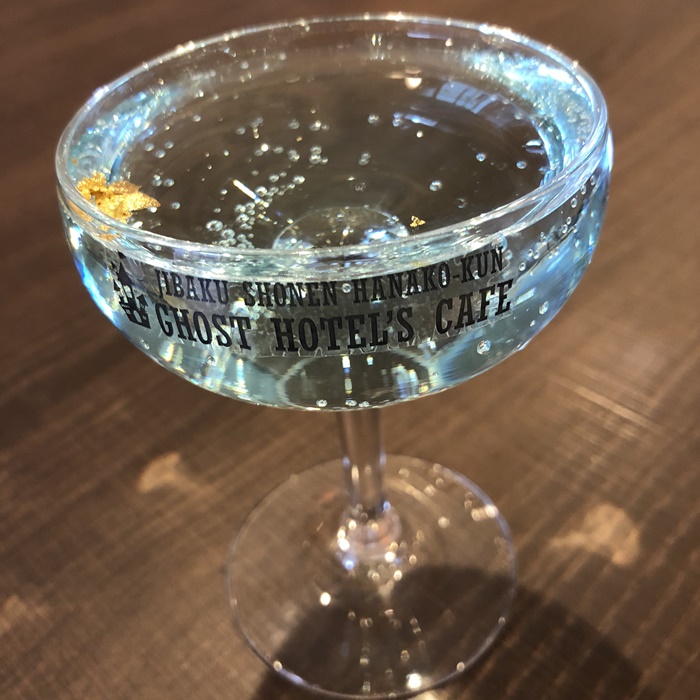 ゴーストホテルに訪れたお客様を歓迎する“寧々のウェルカムドリンク”。薄っすら青みがかったラムネソーダには金粉がゆらゆらと浮かんでおり、「子供のころの懐かしい飲み物」というよりは「これを飲んだらこの世とは違う世界にいけるかもしれない」と感じてしまうような不思議な美しさ。
