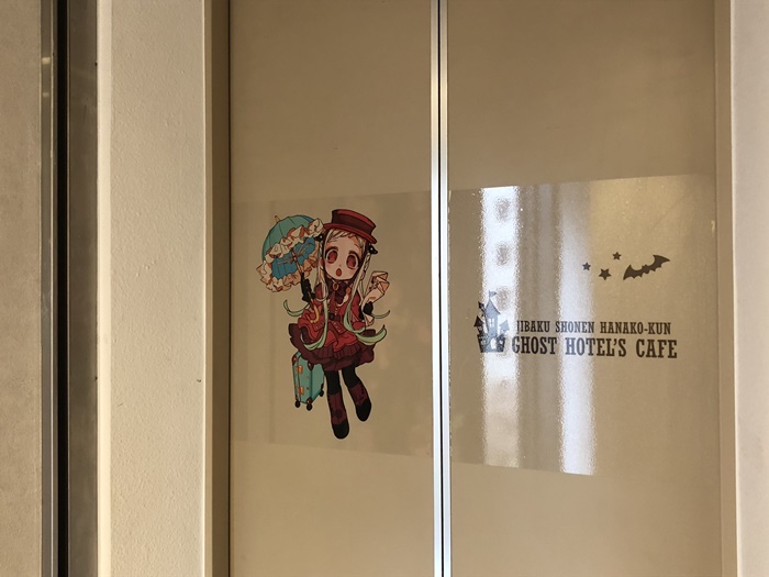 池袋のアニぱらCAFÉがあるのは、池袋東口から徒歩5分の場所にあるビルの7階(1階のセブンイレブンが目印!)。今回のコラボカフェは『地縛少年花子くん』דゴーストホテル”をイメージしており、ドアを開けると“ゴーストホテル”の従業員となった“花子くん”たちがお出迎え。