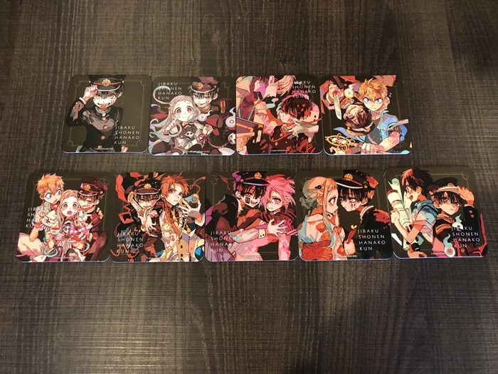 なお、『地縛少年花子くん』のコラボフード&ドリンク注文1品にするとコースター(前半9種/後半12種)が1枚ランダムで手に入ります♪(画像は前半のもの)