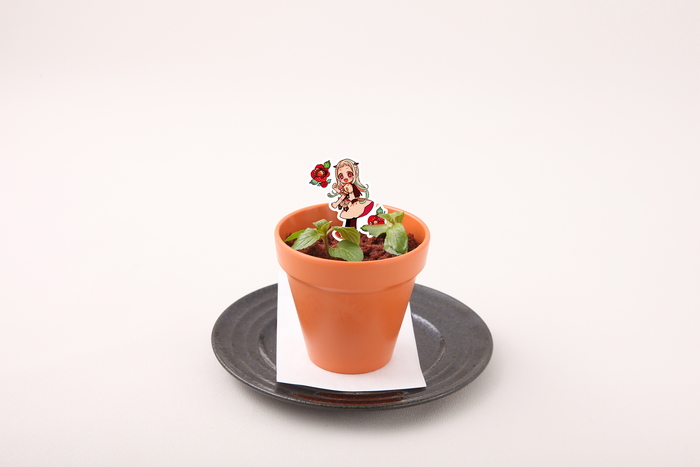 園芸部の寧々にちなんだ食べられる畑。上の部分はチョコマフィンを細かく砕いたもの、鉢の中にはマスカルポーネやチョコムース、ベリーが入っています。