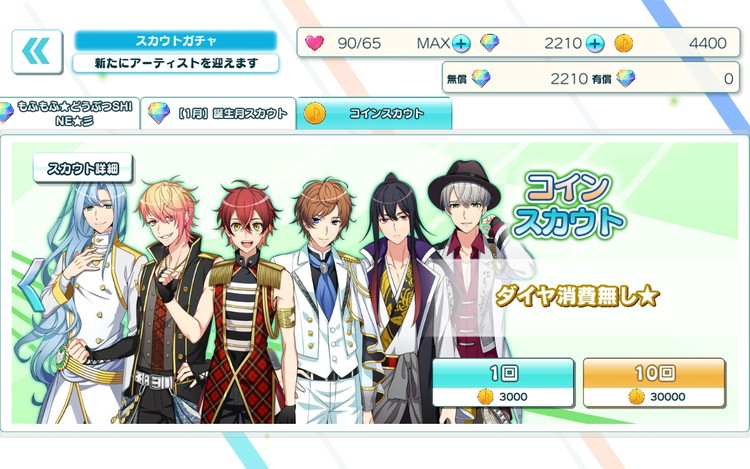 ガチャは大きく分けて2種類。ダイヤを消費するダイヤガチャと、コインを消費するコインガチャです。ダイヤガチャの方がレアリティの高いアーティストが手に入りますが、作曲のハードルがかなり高くなります。もちろんライブで大活躍するので、やはり高レアリティのアーティストが欲しいところです。