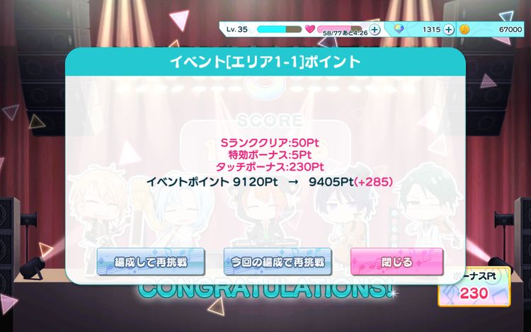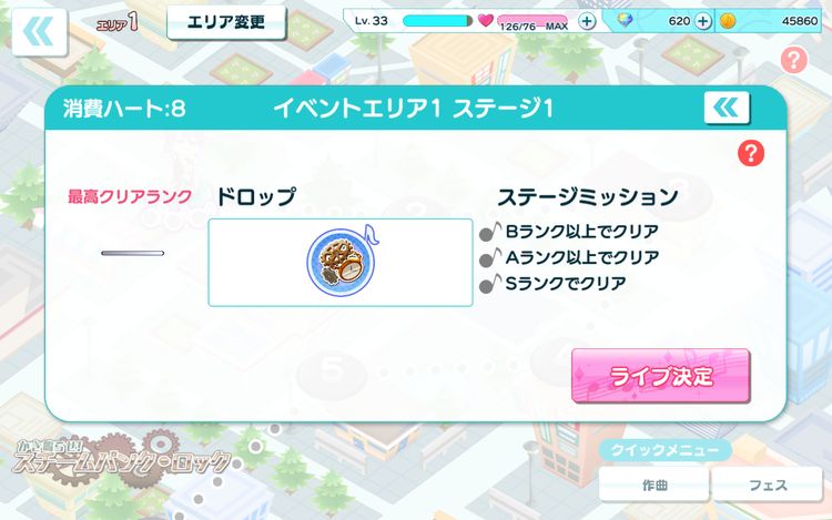 イベントライブではポイント以外にも、ドロップアイテムでイベント限定のメロディーが手に入ります。今回のイベントで手に入るアーティストたちの曲を作曲するためには、このメロディーが必須です。