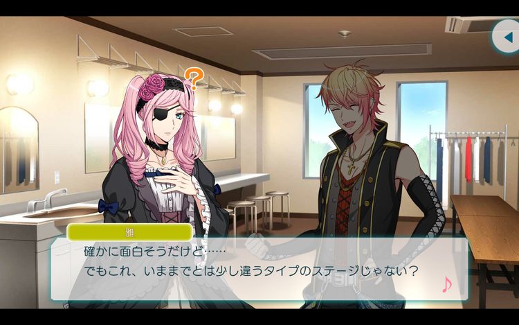 肝心の仕事は4部構成のライブステージ。Apeironはそのなかの第3部、起承転結の「転」のトップバッターを任されます。4人がそれぞれの思う「転」を思い浮かべるなか、優は澪音が何気なく発した歴史という単語に反応。インスピレーションが湧いたらしい優は、スチームパンクの展示会に行くことを提案します。