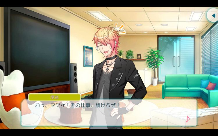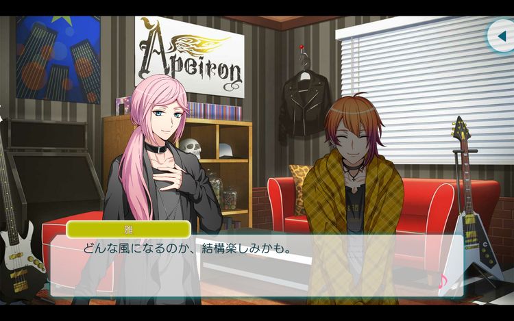 ちょうどApeironのメンバーが揃っていたタイミングで、社長から仕事の詳細が送られて来たので全員で確認します。仕事の内容を聞かずに引き受けた澪音に呆れつつも、全員仕事には乗り気な様子。自分たちの意見も取り入れてもらえるということで、打ち合わせにも気合いが入ります!