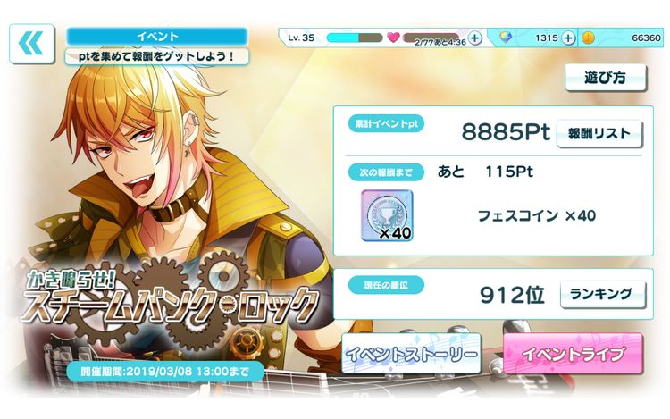 専用の“イベントライブ”をクリアすることで手に入るイベントポイントを集めます。ポイントに応じてポイント報酬やランク報酬がもらえるので、ぜひ上を目指してたくさんのポイントを集めましょう!
