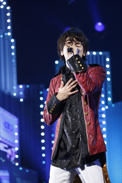 照明が落ちて音楽が流れ始めると、ステージ上に設置された“ブロードウェイ”を彷彿とさせるセットが怪しく煌めきファンの期待を煽ります。そして、THRIVEの3人が登場して披露された記念すべき1曲目は、「超感デスティニー」。豊永さんが「来いよ! 準備は良いか!」、加藤さんが「可愛い声を聞かせて!」、花江さんが「パシフィコ最高~!」とそれぞれのキャラクターを彷彿させるあおりに続いて「Maybe Love」では、歌詞中の“Shining starlight”という部分をファンに歌わせる演出も。