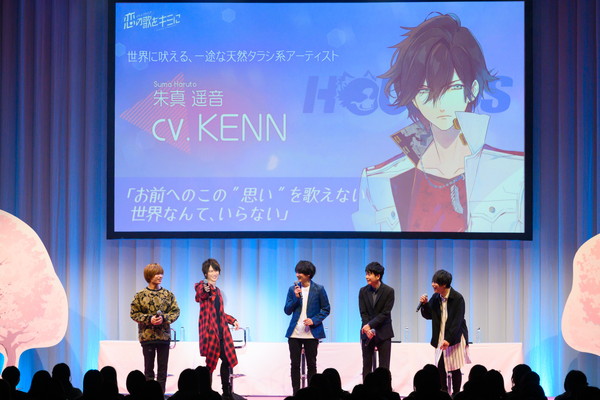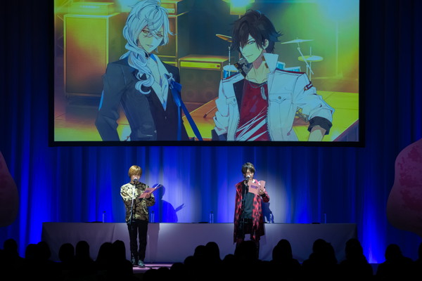 シリーズの紹介は各チームのメンバーが協力(?)し合って読み上げることに。イケメンヴァンパイアチームは佐藤さんと森嶋さんが交互に読み、効果音を堀江さんがつけるスタイル。佐藤さんと森嶋さんが終始セクシーに読んでいたせいか、次のイケメンライブチームの様子がおかしなことに。紹介を振られたKENNさんは深町さんを誘い、肩に手を回して読み始めたのですが、深町さんによる謎のセクシーな合いの手が入り、客席からは笑いがもれていました。
