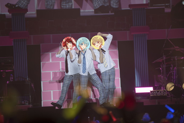 トップバッターのさとみが登場すると会場はさとみカラーのピンク色に染まり、さとみは「アイのシナリオ」で観客を魅了しました。続いてジェルが登場し、会場はオレンジ色に包まれました。ジェルの持ち味の低音イケボで「Sコート」を披露しました。