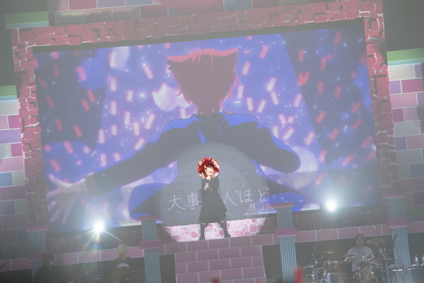 2日目の5月1日(水・祝)の公演は、オープニングムービーが流れるとピンク色の制服姿の6人がステージに登場。「すとろべりーすたーと」収録曲の「パレットダンス」からライブはスタートしました。会場からは割れんばかりの大歓声がわき起こり、推しメンバーのカラーを灯したペンライトの光が色とりどりに輝いていました。続いて間髪いれずに、歌ってみたの人気曲「ロメオ」を熱唱。一気にいちごの王子様の世界に観客を引き込みました。オープニングの2曲を披露すると、メンバー各人が1人で曲を披露するパートに進行。