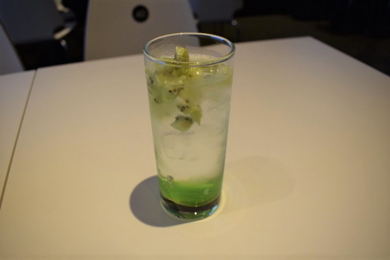 殿をイメージしたキウイの炭酸ドリンク。すっきりした甘さでゴクゴク飲めちゃう! トッピングされたキウイの食感も楽しいです。